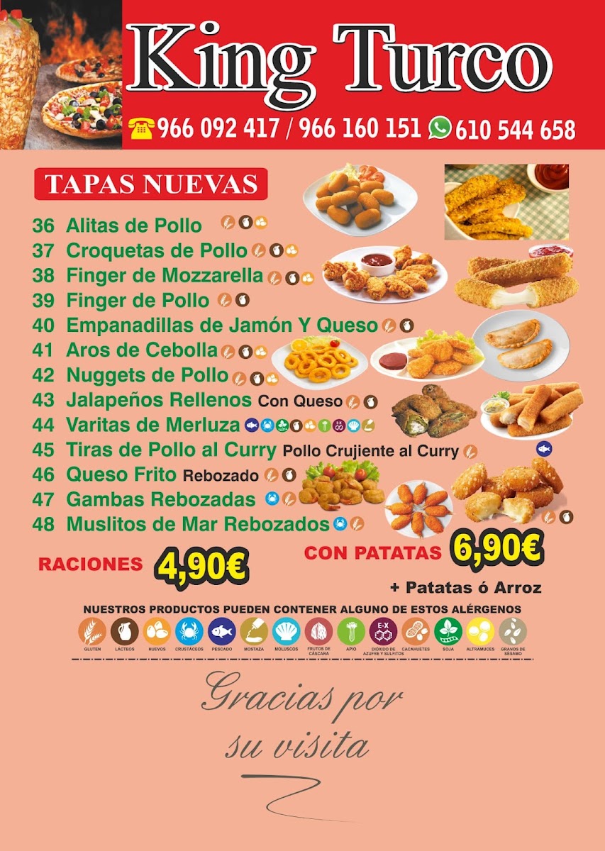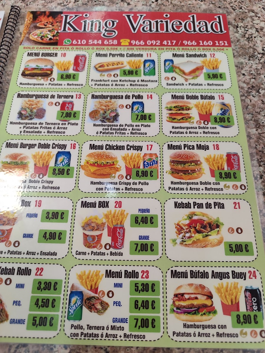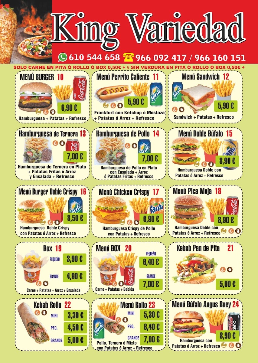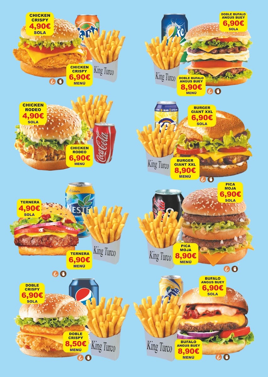 At King Turco Doner Kebab, located in Torre del Pla, the menu offers a delightful mix of Mediterranean and Turkish flavors, perfect for those craving satisfying comfort food. Their signature Kebab stands out, with tender meat wrapped in freshly baked pita, accompanied by a variety of flavorful sauces. For those looking for something heartier, the Plato Al Horno is an excellent choice, offering a generous serving of roasted meats and sides that embody rich, comforting flavors. The Menú Burger is another popular option, combining a juicy patty with fresh toppings, making it a must-try for burger enthusiasts. For a truly filling experience, the Especial Completo provides an all-in-one meal, complete with a selection of sides and main dishes, ideal for sharing or indulging in a substantial feast. With its diverse range of dishes, King Turco Doner Kebab ensures that every meal is both flavorful and satisfying, offering something for every palate.